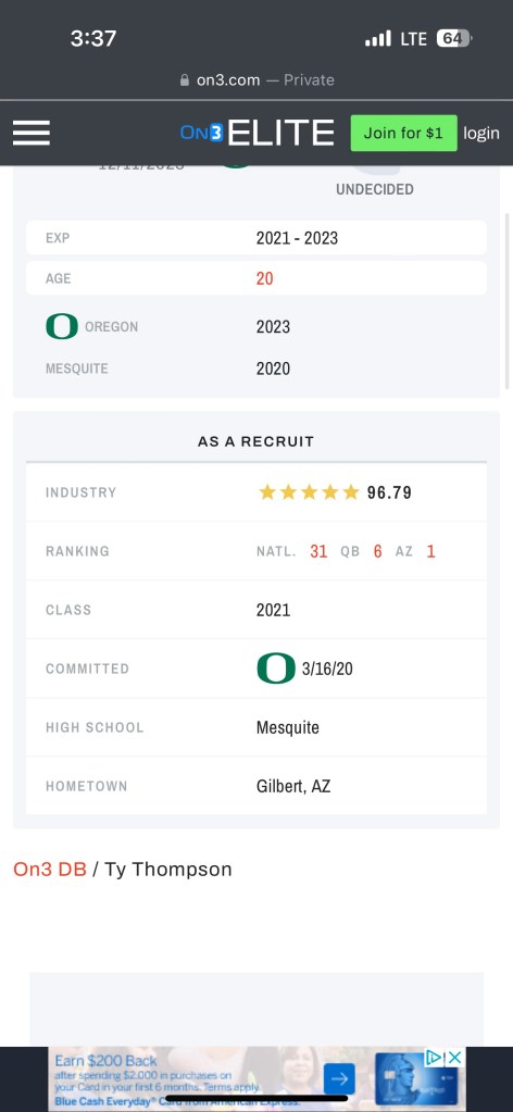 The trail went cold on Nelson but maybe it was a smoke screen all along. What if there was another highly touted 5 star recruit on a PAC-12 blue blood sitting behind a heisman candidate who had just entered the portal? Ladies and gentleman, I’m talking about Ty Thompson.