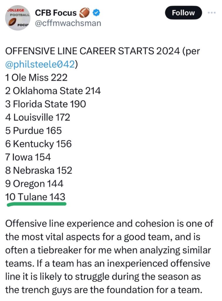 Barring injury, your starting 5 upfront from left to right will be Graham, Hurst, Murphy, Remetich and Green. 3 starters from last year and two transfers with tons of experience. Collectively, they have 143 starts up front. This ranks tenth in the nation and shares the top 10 with many elite rushing programs. This group has a high ceiling and there should be no greater beneficiary than Makhi.